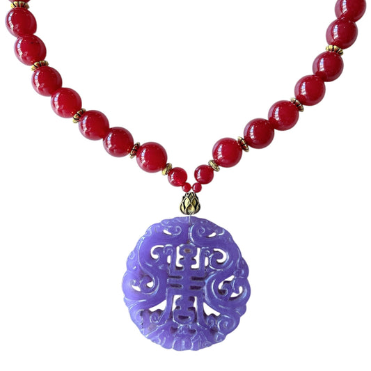 Buffalo horn necklace with yellow jade and red agate butterflies