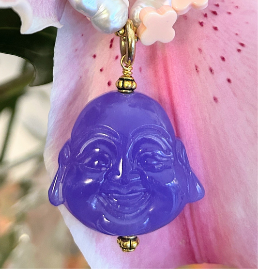 Baroque freshwater pearl and conch choker with jade smiling Buddha pendant