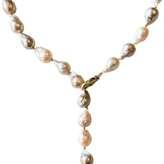 Large baroque freshwater pearl choker with a carving in the shape 2 lions
