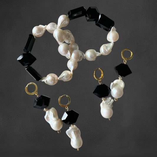 Large baroque pastel coloured freshwater pearls with moss agate goldfish