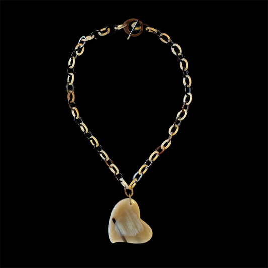 Buffalo horn necklace with yellow jade and red aventurine butterflies