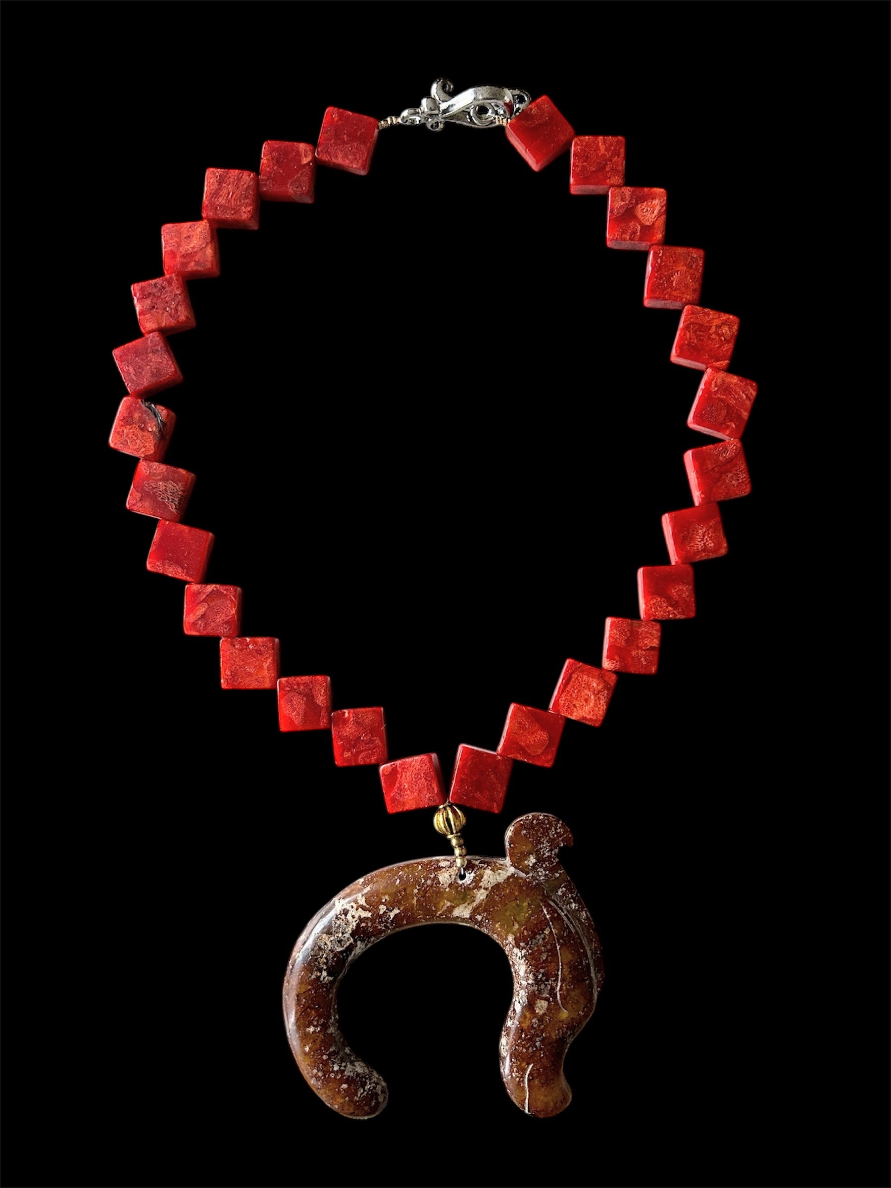 Sponge coral necklace with dragon carving